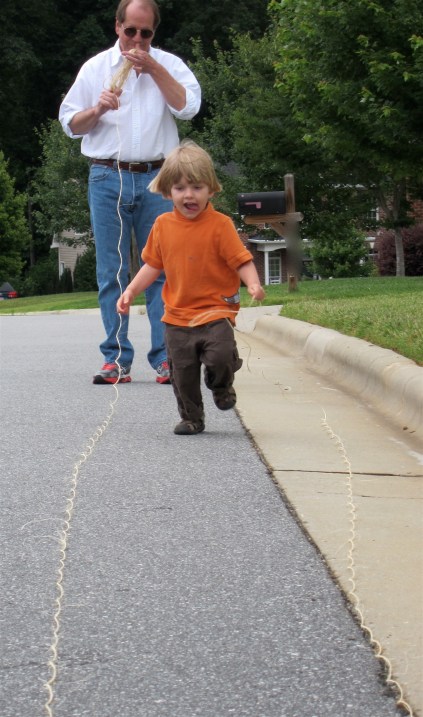 Crowley and his grandfather, G.G. pick up the other end and start walking! Finally, with a few HOUSES between us, we get a very real picture of how amazing that animal must be.