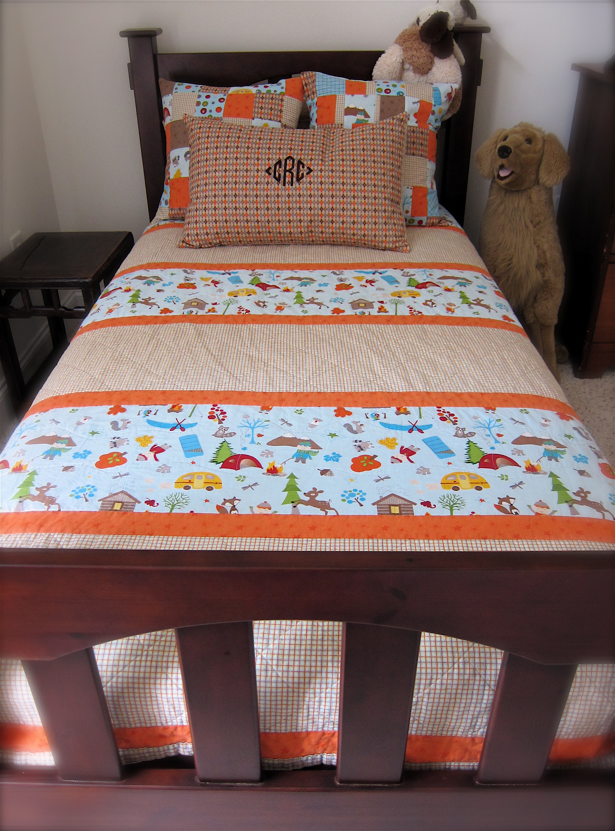 And now he has a quilt for his big boy bed, a patchwork pillow case, two patchwork shams and an argyle lumbar.