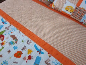 I intentionally placed this bit of embroidery on the underneath of the bottom of the quilt. This way, as he gets older, he won’t feel embarrassed by all the mommy love and yet he’ll know it’s there but none of his friends will. And the truth is, I love to hide little messages in most things I make for the children, including the linings of their rain coats and longalls!
