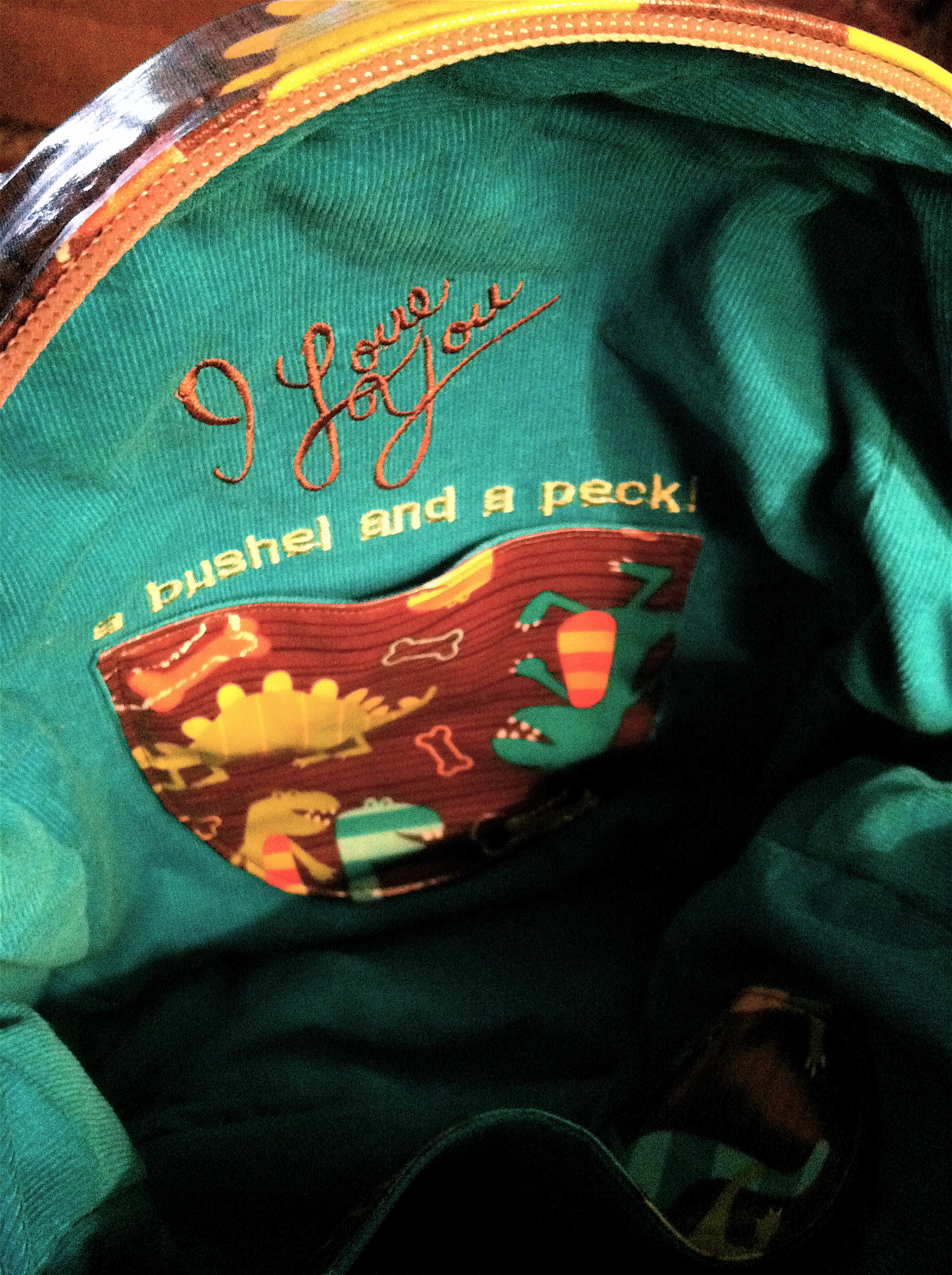 Secret Message for C’s Backpack Published August 12, 2012 at 1935 × 2592 in Three Little Words that Have me Running to my Sewing Machine!