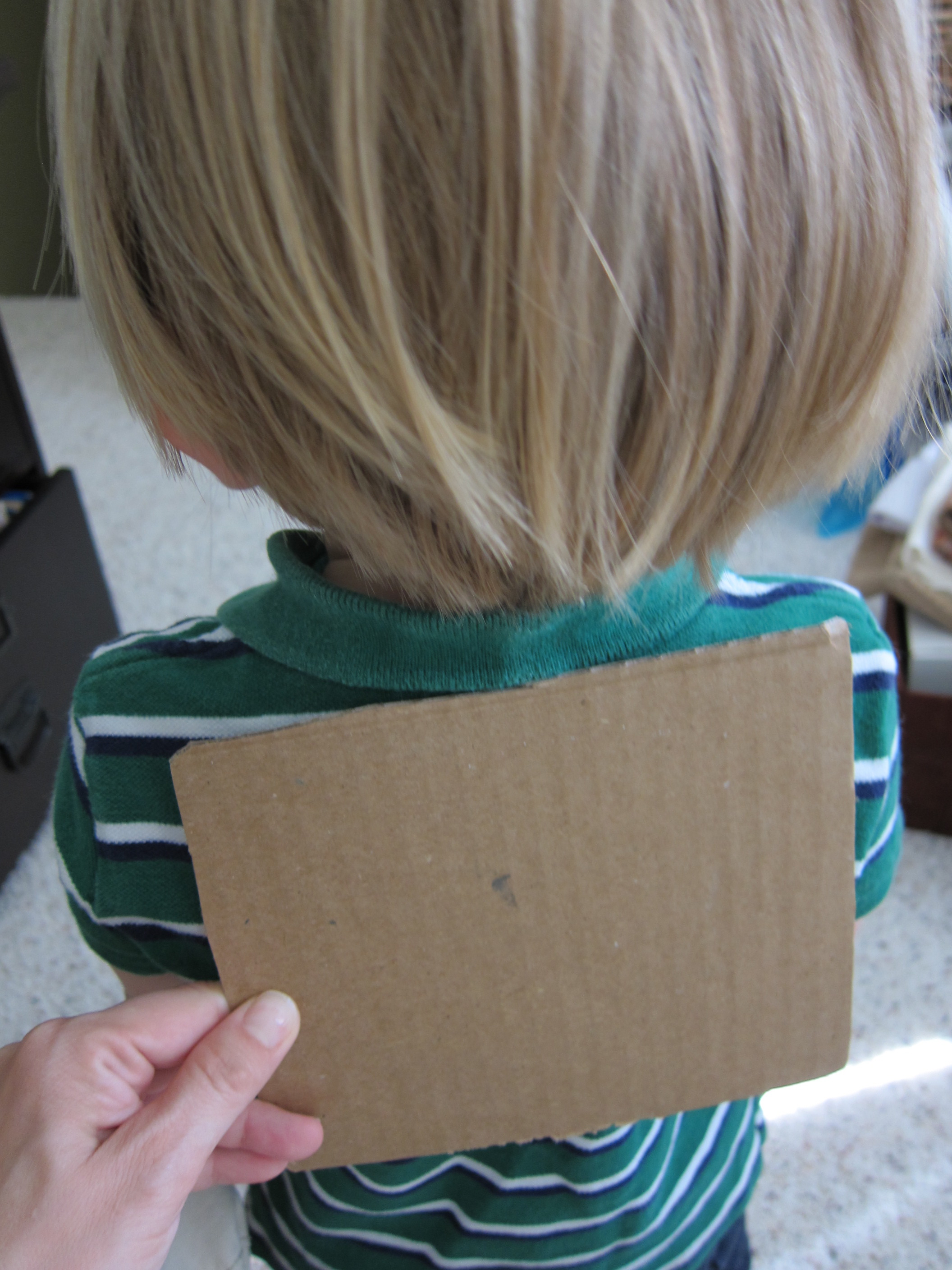 Cut out a piece of cardboard that will support the bottles and fit your little one’s back.