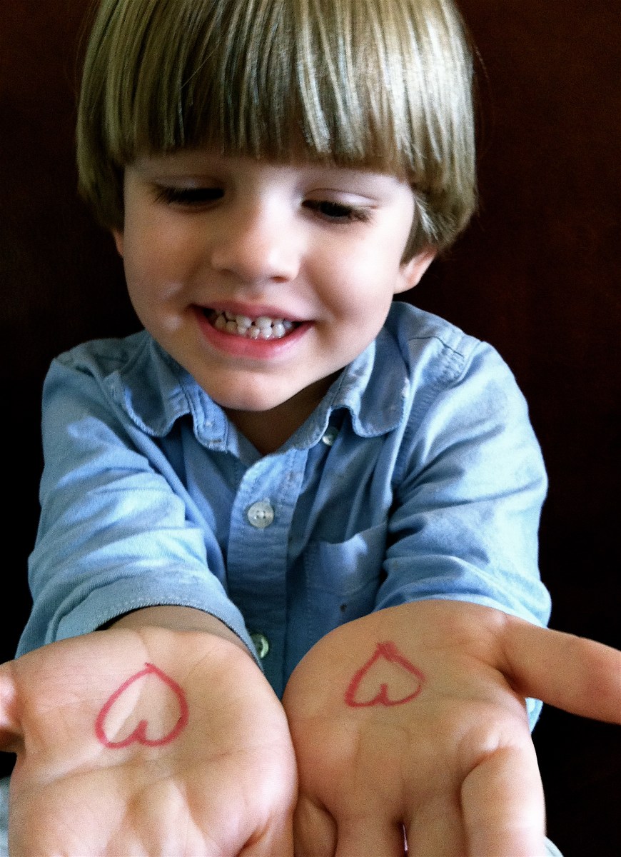 The Kissing Hand Hearts Published September 3, 2012 at 1810 × 2497 in Back-to-School Books to Fall in Love With After Reading The Kissing Hand, I draw these little hearts onto C’s hands!