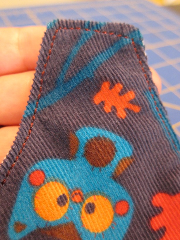 STEP 1: Turn your Jon Jon right side out. You can use the flat or dull end of a skewer to carefully and slowly poke out the corners of the straps. Now Iron.