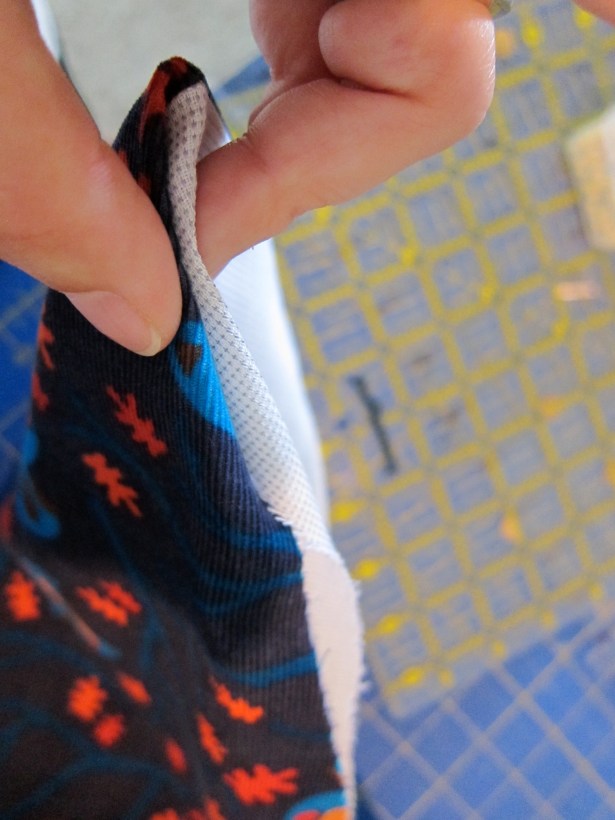 We left off with the our lining and main fabric sewn together along the top edge, around the neck and arms. With strap corners clipped, we are ready to get started.