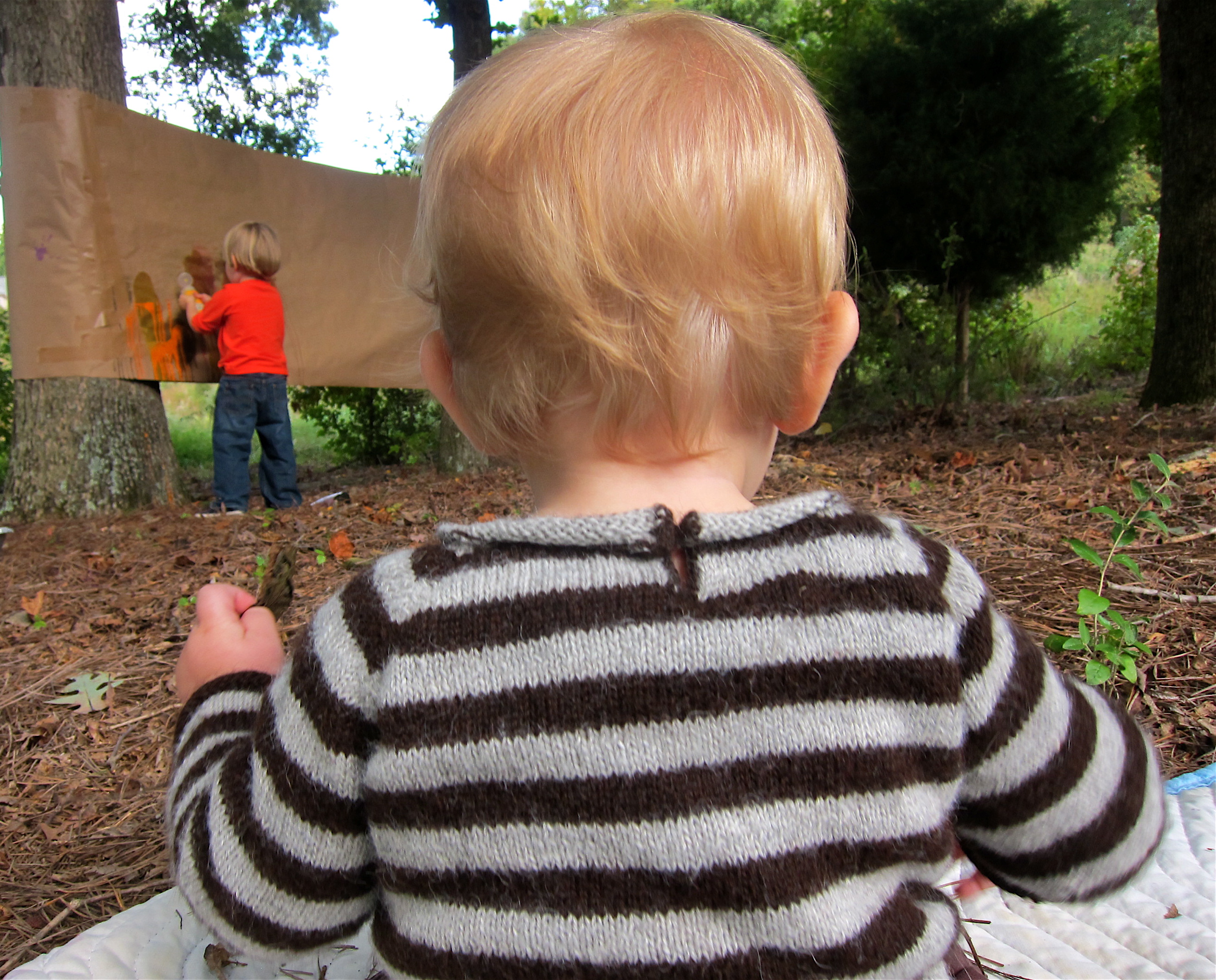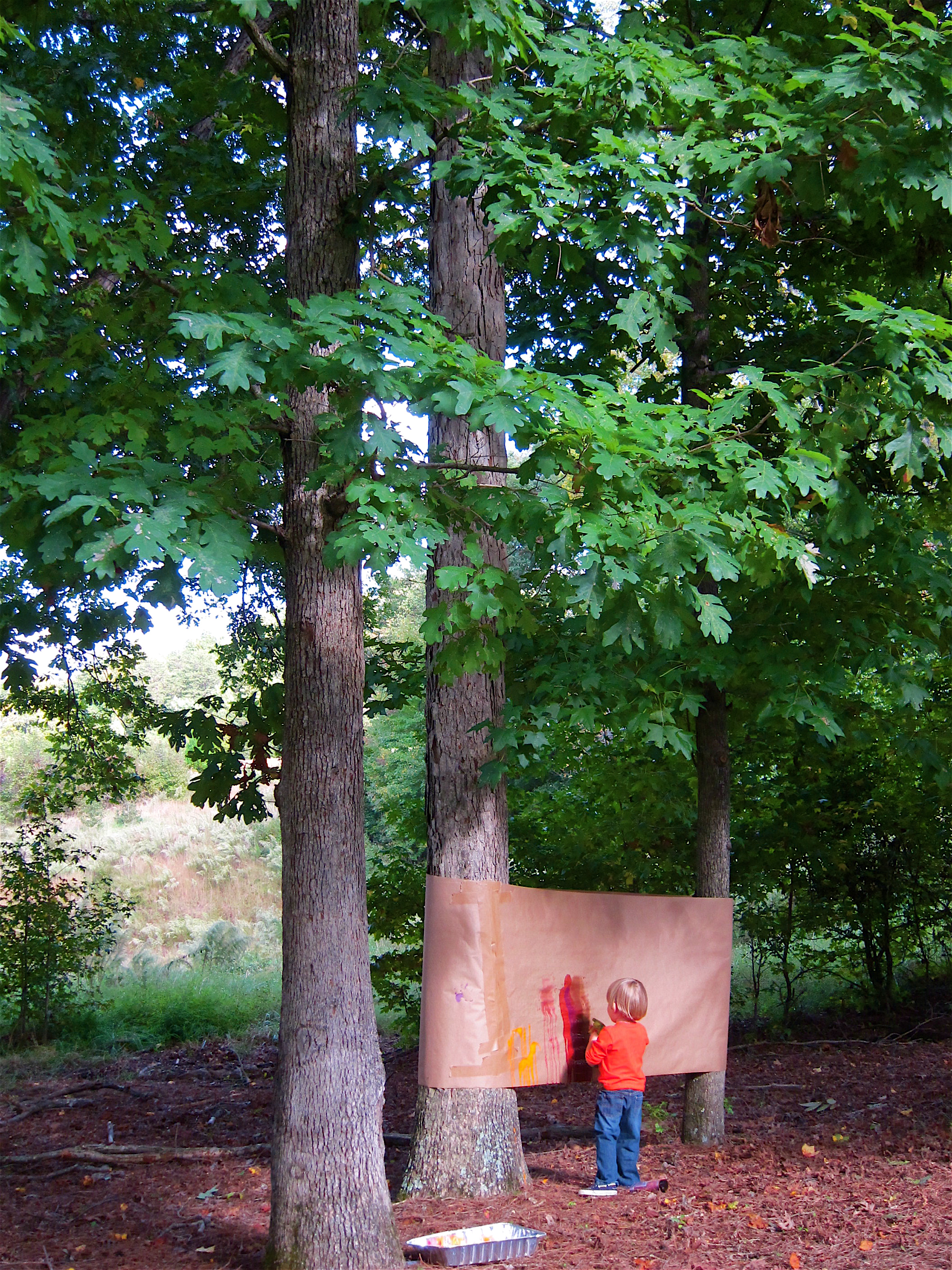 Today, we are taking our art supplies and meeting under the trees. Our mission is to create a mural worthy of the animal friends that roam our backyard. Call it installation art, call it crazy, but once you read about who (or what) is taking note of this incredible art, you will be RUNNING to your backyard with toddler and art supplies in tow! Trust me.