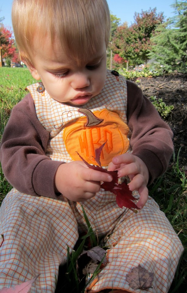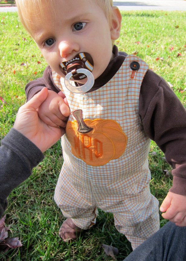 I’m a little behind schedule on the holiday clothing production – so when I made Baby Q’s Jack O’ Lantern longall, I made it reversible so this outfit can last through Thanksgiving. It’s a decision that gave a certain neurotic mommy great peace of mind.