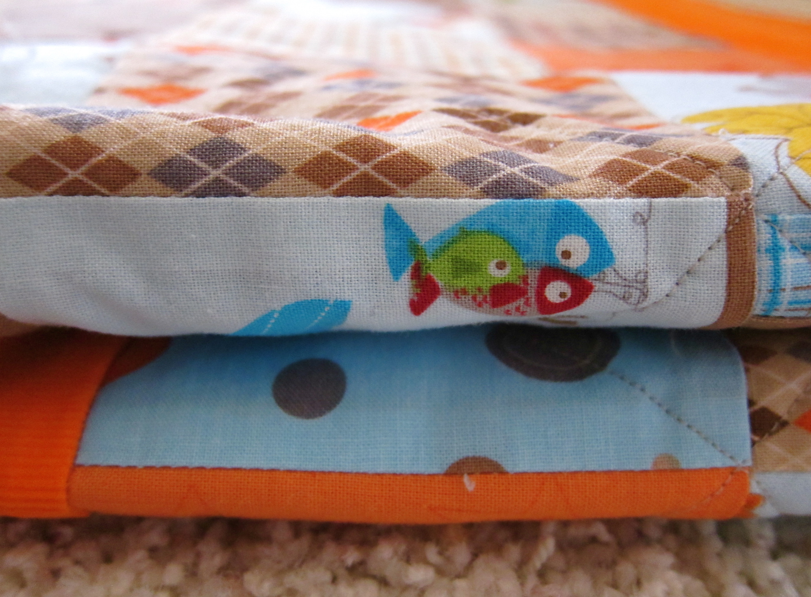 I decided to break up the patch work with some orange fine-wale corduroy left over from Halloween’s past. It’s in the same color family as the orange in the prints, just a bit brighter which really worked out.
